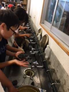 ごちそうさまの後は、みんなで片付けです。鍋やまな板、包丁などしっかり洗えているか、点検してもらい、合格すれば終わりです。