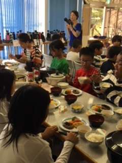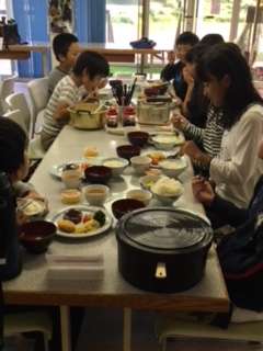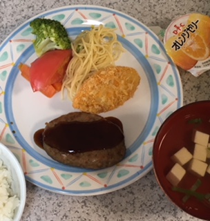 メニューは、ハンバーグ定食です。この後の活動は、ナイトハイクです。