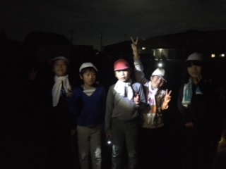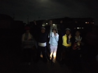 夕焼けがとても綺麗でした。まだ日が残るうちに、昨日の魚つかみの場所に移動しました。昼間と夜の違いを目や耳、鼻など諸感覚を使って気づいてもらいたいと思いました。サンダイフクのAさんから森・林の話を聞いた後、班ごとに林の中を歩いて自然を確かめました。