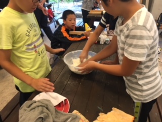 小麦粉をこねて、棒に巻きつけて焼く棒焼きパン作りに挑戦です。