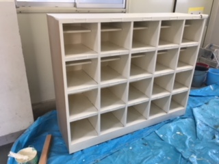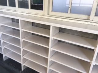 きれいになりました!管理作業員さんがこの夏休みに全教室の靴箱や、廊下の壁の一部を塗装してくださっています。2学期から気持ちよく使えますね。