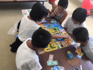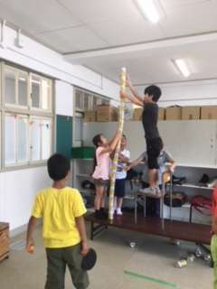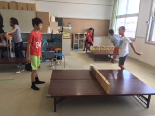 感積み競争、ボードゲーム、卓球などいろいろ工夫して遊んでいました。明日の午前中は、鶴見緑地公園事務所の方が公園の使い方の話や、食虫植物などを見せに来校してくださいます。