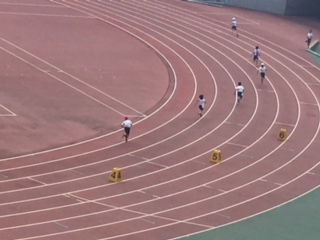 今日9時15分から大阪市小学校体育連盟主催の陸上大会が、長居陸上競技場行われました。台風が接近の為、午前中のみの競技でした。