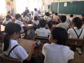 夏休みの思い出や、2学期頑張りたいことなどの発表をしたり、明日からの算数学習のためのレディネステストをしている学年もありました。