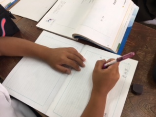 2学期の最初は「詩を味わおう」という学習です。音読をした後、視写しながら自分が好きな表現などを見つけました。