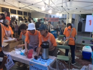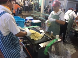 講堂前にいくつか夜店が出ています。ホットドッグや焼きそばのいい匂いがしています。