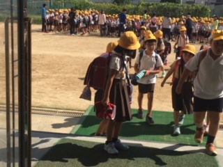 通学路で心配な箇所があり、集団下校をしました。5時間目終了後、学年ごとに運動場に並び、それから町会毎に並びかえました。人数を確認して、遠いところから出発しました。先週の避難訓練の時と比べて早く町会毎に並び、さっさと行動できている子が多かったように思います。明日の登校時も自分で判断し、気をつけて登校できるように願っています。