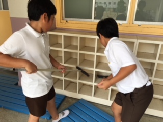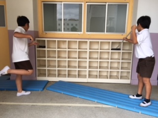 先日の台風で、外廊下に面している教室の靴箱やすのこに泥がたくさんついていました。5年生の子供たちが一生懸命掃除をしてくれました。きれいになりました!ありがとう!!