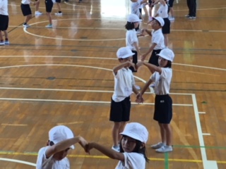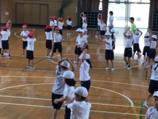 「Goサインは1コイン」という曲で踊ります。隊形を変えて踊る練習もできてきました。体が自然と動き出す楽しい曲です。みんないい顔で踊っていますよ!