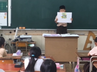 「たからものをしようかいしよう」の学習です。一番大事なものの絵を描き、その説明を、「はじめ・なか・おわり」を意識して文章を作りました。友達の発表をしっかり聞いて、質問もたくさんありました。
