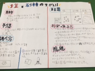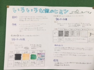 夏休みの自由課題として理科担当の先生から「自由研究」が出ていました。いくつか教室に掲示しています。自分が不思議だと思ったこと、調べてみたいことを図書などを参考に実験をして、絵や写真を入れてまとめています。他の学年の参考にもなるのでまた紹介していきたいと思っています。