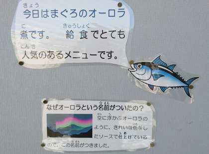 毎年、給食人気メニューベスト5に入る「まぐろのオーロラ煮」が3日の給食に登場しました。
