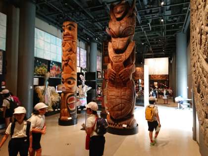 国立民俗学博物館ではグループで見学しました。リーダーを中心に時計係が時間を見ながら、みんな協力して問題なく見学することができました。