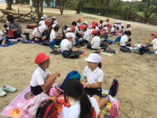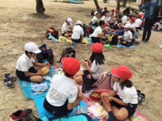 待ちに待ったお弁当タイム!暑すぎず寒すぎず、ちょうど良い気候で、グループで仲良くいただきまーす!!