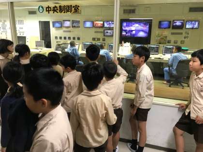 ゴミピットのクレーンが1つかみパッカー車2台分と知って、その大きさに子どもたちは驚きました。全てコンピュータによる制御なので、70人の中で4交代して大きな工場が稼働したことにも驚いていました。