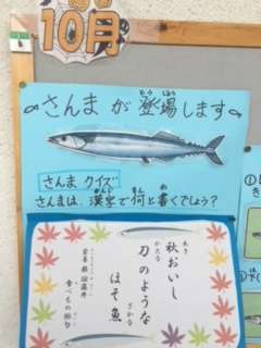 脂がのって美味しくなる季節です。さんま、上手に食べることができますか?骨があって面倒くさいと思うでしょうが、栄養たっぷりですよ!栄養教諭のF先生の食べ物俳句も味わってくださいね。