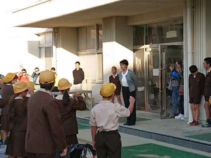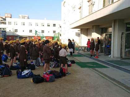 晴れ空で気持ちのいい朝。今日から6年生は修学旅行に出かけます。