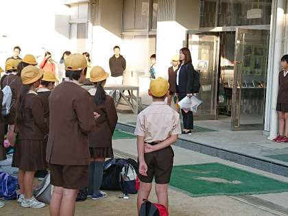 運動場で出発式を行いました。一人一人の表情はとても明るいです。小学校生活一番の思い出になるかもしれない修学旅行。友だちみんなで活動することを意識して、楽しい時間を過ごしてください。