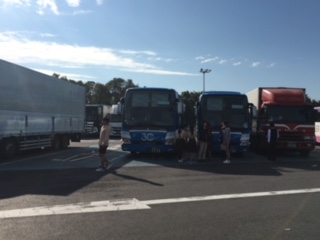 草津パーキングエリアでトイレ休憩です。少しバスに酔いかけた子もいますが、元気です。ここから信楽 宗陶苑に向かいます。