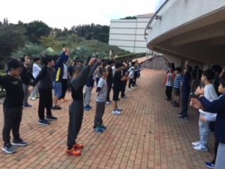 全員元気です。ラジオ体操をして体を目覚めさせました。