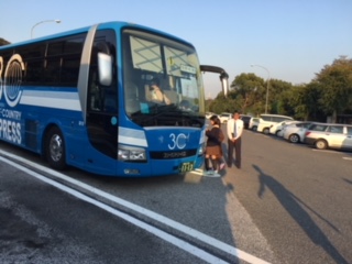 香芝サービスエリアで最後のトイレ休憩をとり、学校に向かっています。5時過ぎに到着予定です。
