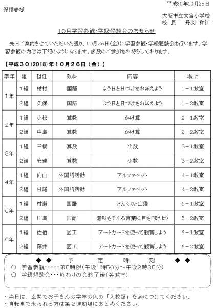 何かとご多用のことと存じますが、ご来校くださいまして、子どもたちの学習の様子をご覧ください。