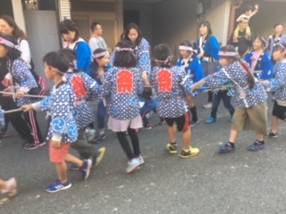 27.28日に行われる大宮地域秋祭り。昨年は台風で中止となり、2年ぶり、40年目の開催です。町会毎にだんじりを引いて地域を回ります。4年生以上のは、太鼓を叩かせてもらい、小さい子達も憧れの眼差しで一緒に歩きます。今年は、子供会に所属していなくても参加できました。地域でこのように見守り育てていただいていることをとてもうれしく思います。