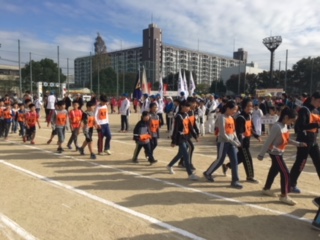 今日9時より、旭公園グラウンドで旭区スポーツフェスティバルが開催されました。子ども達に続いて諸団体の方々の入場行進。昨年度準優勝した大宮小学校下チームは、準優勝カップを返還し、レプリカをいただきました。