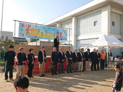 雲ひとつない晴天のもと、大宮フェスティバルが始まりました。まずは開会式です。主催者の大宮校下地域活動協議会会長のご挨拶から始まり、来賓の皆様が紹介されました。大宮地域の一大イベントにたくさんの方々が来られました。学校長の挨拶では、子どもたちに「自分たちのためにこれだけ多くの方々が動いておられることを当たり前と思わず、感謝しましょう。そして、これから自分たちが地域を背負って立てるようにしましょう。」との言葉がありました。児童のみなさん、今日は思いっきり楽しみましょう!