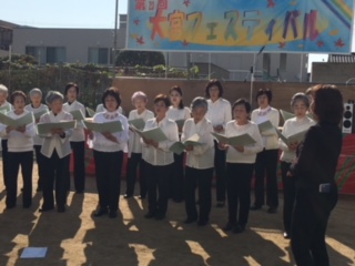 9時半、フェスティバルがスタートしました!ステージでは、生涯学習ルームコーラス隊の合唱、旭警察防犯係による「痴漢対策」などの発表が行われました。