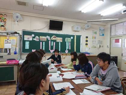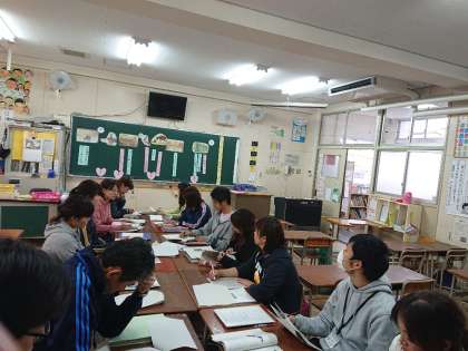 放課後に、4年生の公開授業についての研究討議会を行いました。教材文の分析、子どもたちひとりひとりのの意見の分析、掲示物の作成等、45分の授業を行うために必要なことが何であるか、何に努力を注ぐべきか、改めて確認することができました。