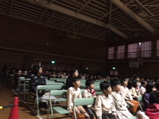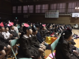 他学年の発表を互いに見合いました。じっと食い入るように見つめる低学年。大きな拍手や笑いもたくさん。いい反応があり、「今日は一番やりやすかった!」と4年生。明日は、自分の出番以外は、教室で学習をします。