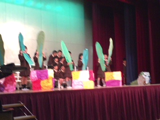 初めての学習発表会、緊張しているかなと思っていたけれど、いつも通りのびのび、楽しみながら表現していました。国語の時間にスイミーの音読をたくさんしたり、動作を考えたりしてきたのが全て表現されていました。最後はみんなが集まって本当に大きな魚に見えました!