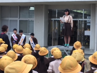 全校朝会でもお知らせをしました。代表委員、ボランティアの元気なあいさつがとても頼もしいです!