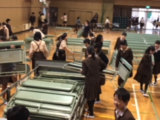 講堂の片付け