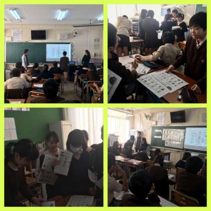 2時間目、6年2組で大阪市移行措置対応の学習指導を行いました。「将来の夢、あこがれの人」についての単元の導入です。「be good at〜」を使った言い方を知り、「A re you good at〜?」の使い方に慣れるように友達にインタビューをしました。最後は、ワークシートにある例文を参考に、自分の紹介したいヒーローを書きました。単元の終わりには、書き溜めたものをまとめて発表する予定です。