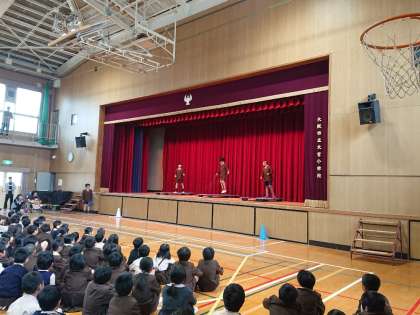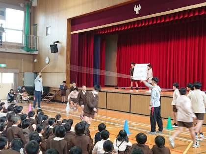次に体育委員会から、今日から始まったなわとび週間に関しての発表がありました。なわとび台の使い方、長縄を使った8の字とびのコツなどをわかりやすく説明しました。積極的になわとび運動に取り組んで、体力・運動能力アップを目指しましょう!