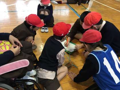 のヒントでどの県か、たてわり班で考えました。ヒントを聞きながらどこだろう?と班のみんなで考えていました。
