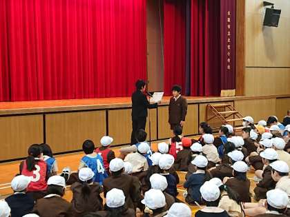 次に読書感想文コンクールで大阪市立学校図書館協議会長賞を受賞した児童へ表彰を行いました。おめでとうございます。