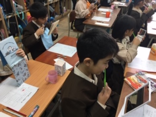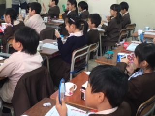 2.3時間目、染め出し剤を使って歯の歯垢が残っていないか調べました。朝食の後ほとんどの子が家で磨いてきていました。歯垢が残っていると染め出し剤で、ピンク色になります。どこが磨き足らないか鏡を見て調べました。そしてもう一度しっかり磨きました。歯ブラシの持ち方、磨き方など、学習したことをきちんと守って虫歯のない歯を作りましょう!