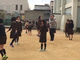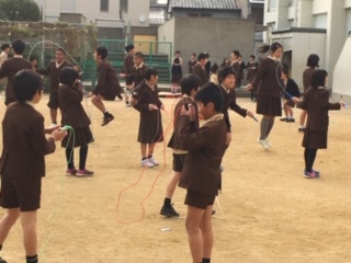 高学年のなわとび週間でした。CネットのG先生も一緒に跳んでくださっていました。