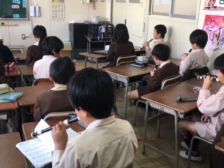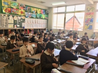 2学期朝の会や音楽の時間に練習してきた曲をおさらいしていました。毎日の積み重ねで、タンギングが上手になりました!!