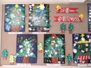 1人一つずつのクリスマスツリーが出来上がりました!子ども達の待ち遠しい、わくわくする気持ちが伝わってきそうです。