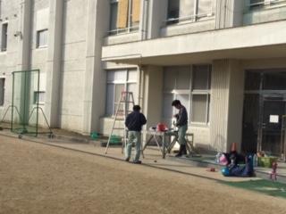 夏に移動型のミストが大活躍しました。来年からのことも考えて、管理作業員さんが、運動場の出入り口に、もう一つ固定式のミストを取り付けてくれました。