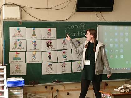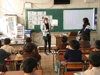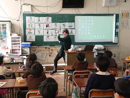3学期もC-NETの先生と一緒に、楽しく英語を学びます。今日のテーマは「I can/I can’t」です。スポーツなどをしている絵を見て、「できる・できない」の言い方を練習しました。先生の大きなジェスチャーを見て、子どもたちはとても盛り上がっていました。楽しい気持ちがどんどん英語を上達させているようでした。