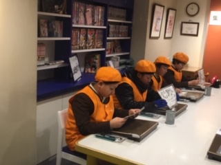 漫画のセリフを考えて4枚のシートに書いています。