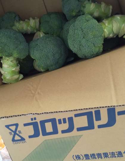 愛知県産のブロッコリーや長野県産のりんごなど給食室に届いたたくさんの食材を調理してくれました。