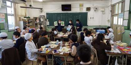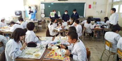 今日は、4年生と5年2組のクラスに調理員さん達が訪問してくれました。