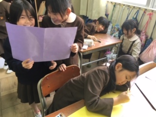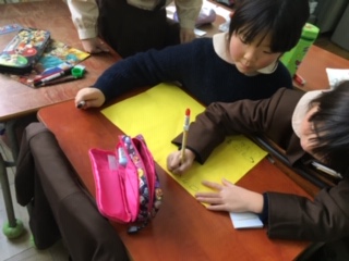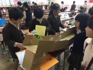 グループでアイディアを出しておもちゃを作ったり、遊び方の説明を考えたり練習したりしていました。