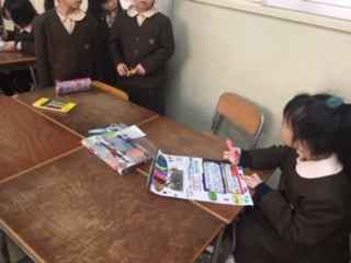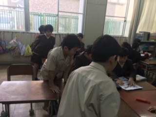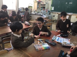 係活動を行なっていました。どんな仕事があるか考えて係ごとにポスターを作っています。